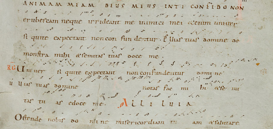 This program assists students in their efforts to learn the vocabulary and grammar (morphology and syntax) and the ancient neums of the St. Gall and Laon notation families. It provides a foundation for exploring the nuances of interpretation that these musical languages can bring to modern chant performance.